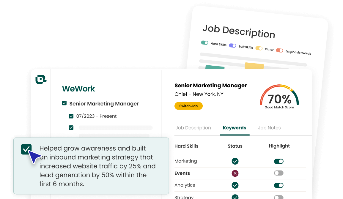 - Keyword Matching - Quickly spot missing keywords so you can tailor your resume