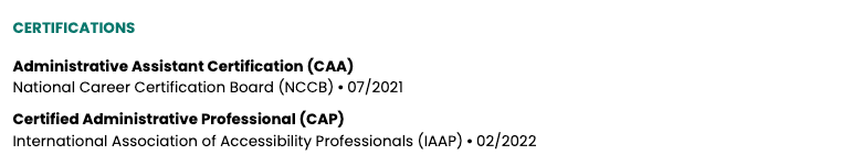 Remember, a current, relevant certification list signals you’re serious about professional development and your career—especially at a glance.