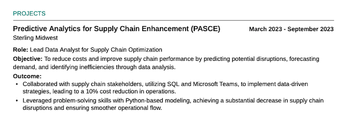 Personal or professional projects can strengthen your resume, especially when relevant to your target role.