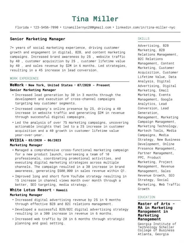 An overcrowded resume can be daunting. Efficient use of white space makes your document more readable, directing attention to the key points while giving the eyes a break. It balances out text and visuals for optimal engagement.